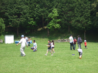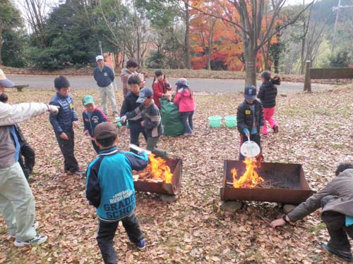 森の中から集めてきた落ち葉でプールをつくり、思いっきりダイビング! 落ち葉焚きでの焼き芋付き! |